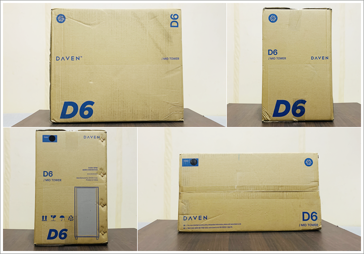 DAVEN D6 MESH 강화유리 블랙 케이스의 제품박스는 단정한 무지박스에 제품 그림과 제품명이 인쇄되어 있습니다.