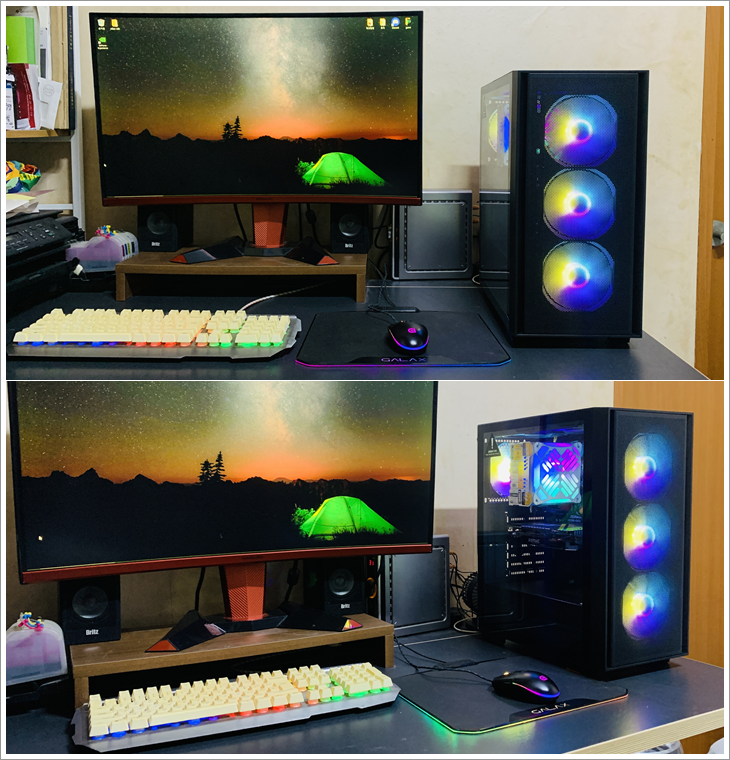 측면 강화유리와 3색 고정RGB 팬의 은은한 색감이 멋지고