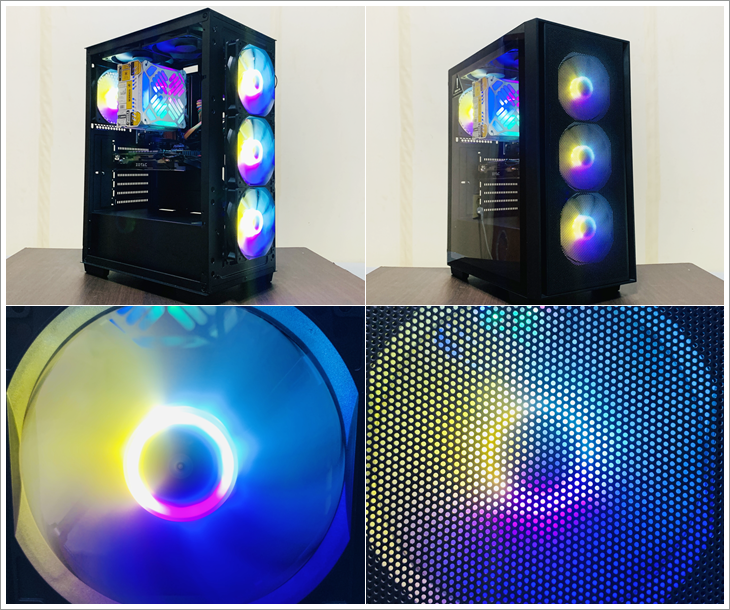 3가지 색상의 고정RGB 팬을 4개 기본 제공하고 측면 강화유리로 내부를 잘 투영해